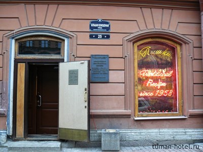 Как проехать от мини-отеля Tuman: из арки на Невский проспект, налево до остановки: автобусы № 191, 24, 27, троллейбусы № 1, 22 до Большой Конюшенной улицы. Затем по левой стороне до пышечной.